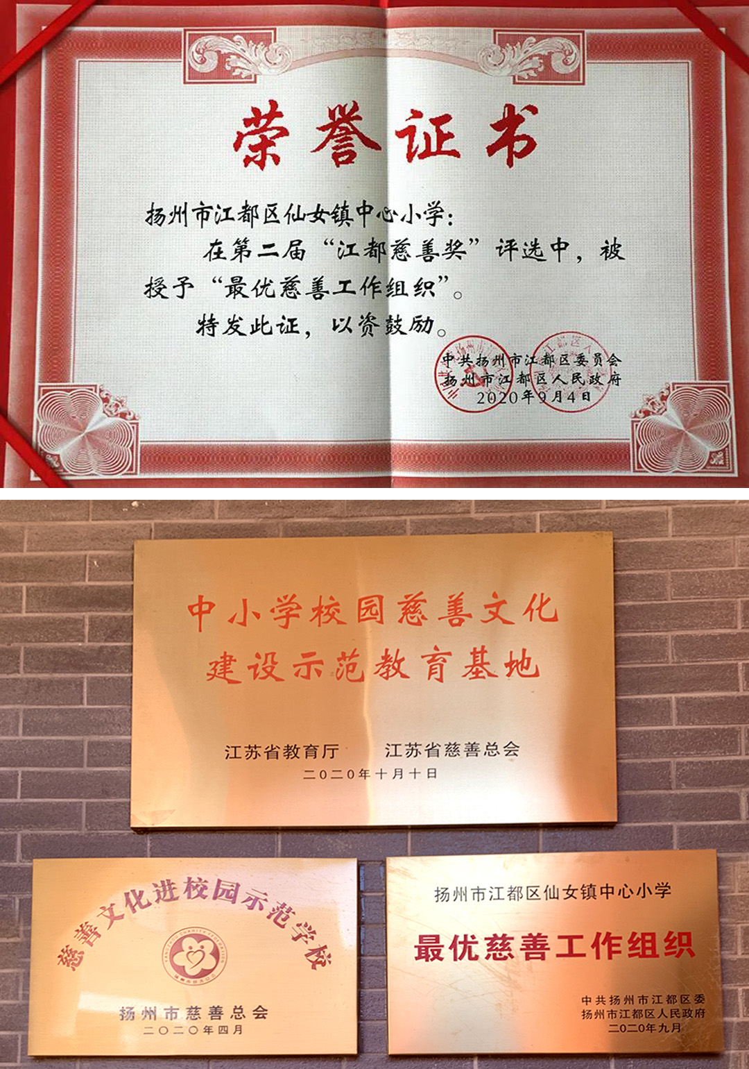 作为中小学校园慈善文化建设教育基地,学校积极实施慈善文化进校园项目,并且获得了第二届“扬州慈善奖”最具影响力慈善项目、慈善文化经校园示范学校、最优慈善工作组织等荣誉。