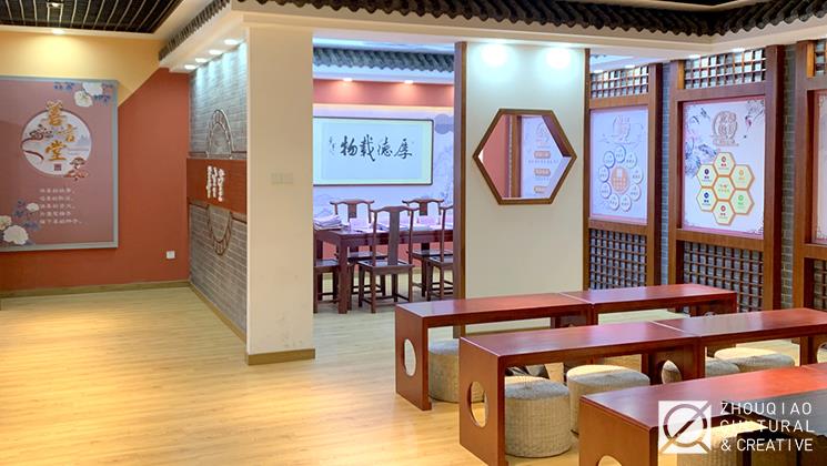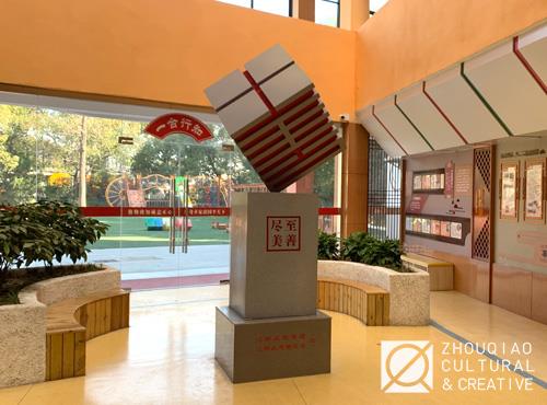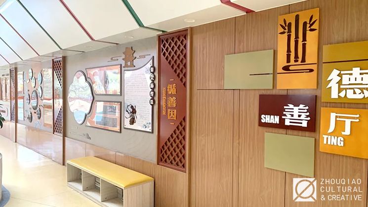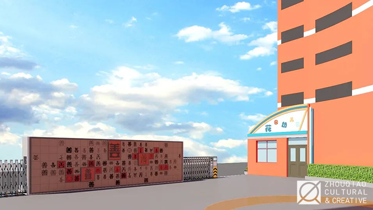 将善融入校园,是结合学校的环境特征与文化特色,对善文化解读并重现的过程。对于楼栋来说,全面的文化环境建设既要做好楼内教室空间的规划设计,也不能遗漏楼栋外立面的修饰。此外,对部分走道甚至是楼层角落也可以适当地进行文化布局,从而实现整体沉浸式的文化环境。