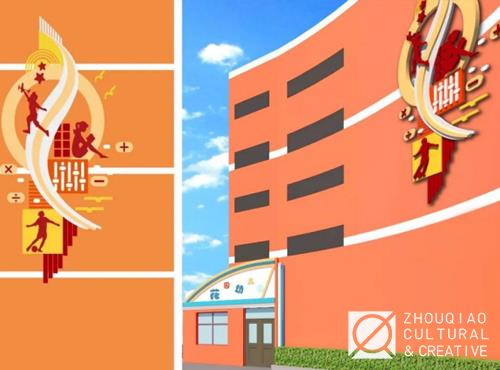入眼的外墙,增添更具象的符号与灵动剪影进行修饰,突出善读书、善运动、善追梦等善主题文化,也突出学校的珠算特色课程,展现一个至善尽美的校园生活状态。