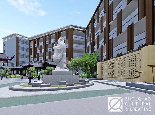 学校在地理自然、历史人文的熏染下,也顺应传承发展中国优秀传统文化的时代要求,确立了儒家文化立校的策略,将儒学为核心的传统文化作为学校文化的底色,从而确立了“弘毅”的校训、“诲人不倦”的教风、“学而不厌”的学风等学校理念。在此基础上,学校还将传统文化和儒学文化融入校园景观环境的建设中,以提高学生学习和传承传统文化的意识和自觉性。此次,我们将分享为鼓楼实验中学的儒学主题广场所做的文化环境提升建设,并从中看一看儒学文化特色的广场是如何打造的。