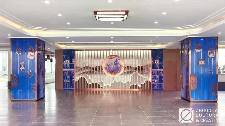 追溯学校文化之源,以线装书蓝铺设出沉稳踏实的环境,加以形式多样的“真”字的印记,让求真的精神意识印刻在孩子们心中,引导着师生践行三风,在求真中求进。将古籍的结构融入设计,将文化的意韵融入环境,一柱一墙都如同浸润着知识的古典书籍,带着传统文化的积淀感,为学生们呈现求真知、学真才的氛围。