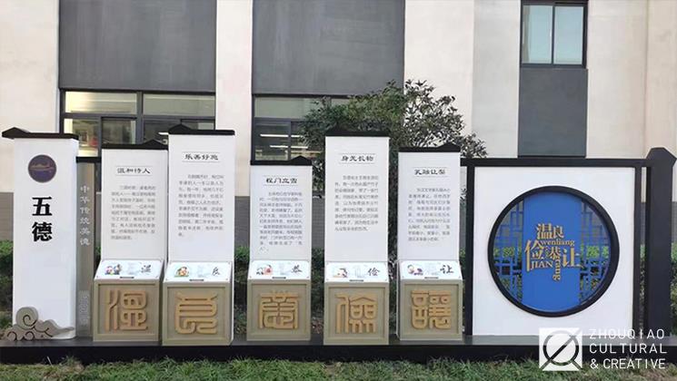 以古人为鉴,明德崇德,践真言真行做真人,塑真诚真信的真品格。以山比德,山脉的起伏剪影象征孔子“仁者乐山”之说。在长廊格柵中嵌入孔子、孟子、荀子、董仲舒等儒学大家的生平,景墙上呈现品德典故。师生行走在园内,回廊漫步,了解圣人、熏陶德行,传承中华传统美德。