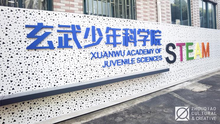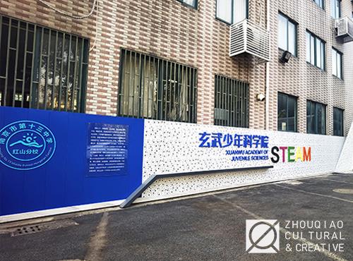 作为“江苏省STEM项目试点学校”,南京市红山初级中学规划打造了“玄武少年科学院”特色课程基地。现今在已经实现课程功能的基础上,我们对“玄武少年科学院”进行视觉上的设计升格,把形象之“美”与功能之“特色”巧妙地结合于一体。使其成为学校内的代表性地标和对外展示的窗口。