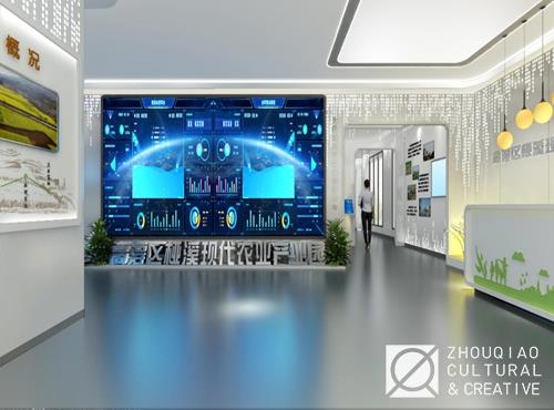 南京市湖熟现代农业产业园的展馆设计是为地域特色农业提供一个展示展览的空间,周桥文化深入了解湖熟现代农业产业园的产业情况,挖掘其特色,最终设计出全面多彩的多媒体现代化展馆。