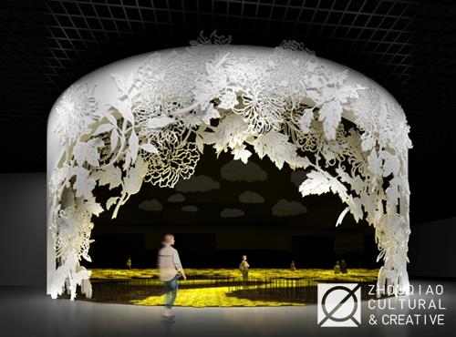 而最后一大主题菊文化的展现形式更多样,既有推拉式的活动展墙将历年的菊花展的精彩内容呈现出来,还有生动形象的菊花沉浸馆让人在四时都能观览到菊花美景,更有菊花种植基因实验等科研领域的真实展示,凸显农业科技的力量。