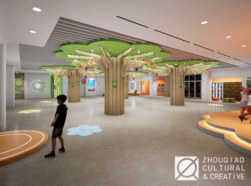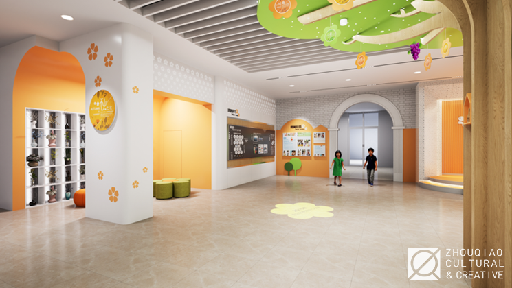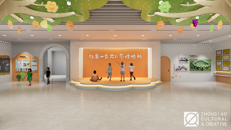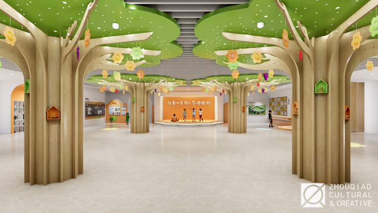 为了突出学校的“花木”特色,在大厅中融入了丰富的花木元素,并且将“花木育人”“花儿少年”等特色文化概念作为线索贯穿到展览的内容规划和艺术设计中。