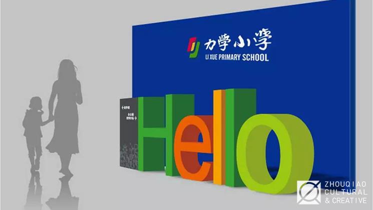 因此,在校门处直切主题,通过解构融合,设计出由“善”和“美”共同组成的概念标识,赋予文化内涵,形成学校善美文化的视觉印象。