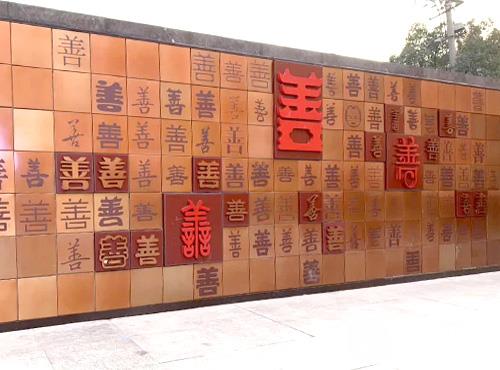 追溯地域文化,寻找文化印记,汲取地域历史上闻名遐迩的仙女庙元素,为学校呈现庙宇造型的百善字体印章墙。端正挺拔的篆书、质朴简淡的隶书、峻拔方润的楷书、率真洒落的行书、纵任奔逸的草书……让孩子认识墙面上笔法多端的“善”,践行生活中多样的“善”。