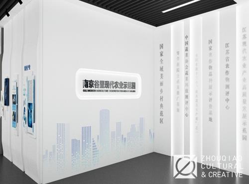 南京市湖熟现代农业产业园的展馆设计是为地域特色农业提供一个展示展览的空间,周桥文化深入了解湖熟现代农业产业园的产业情况,挖掘其特色,最终设计出全面多彩的多媒体现代化展馆。