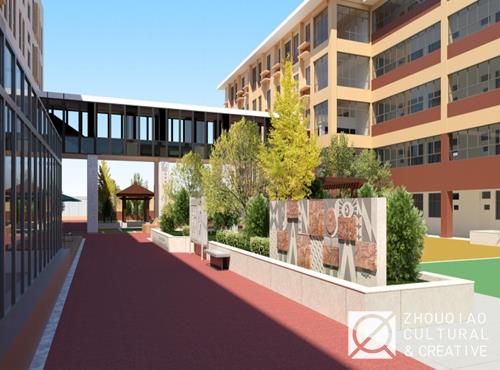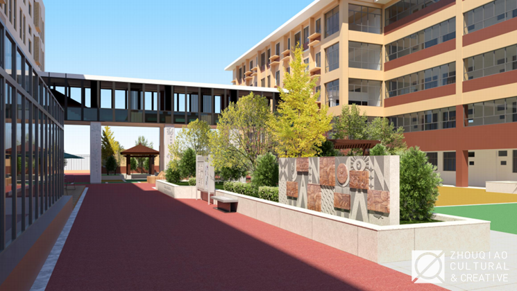 因此,在进行学校的文化环境建设时,周桥文化紧扣住“让优秀成为习惯”的理念文化,在学校的建筑和景观的设计及优化中,凸显学校对“实、高、精、美”的追求,也展现出师生们完善自我、共创辉煌的意志和学校追求优秀的风尚。