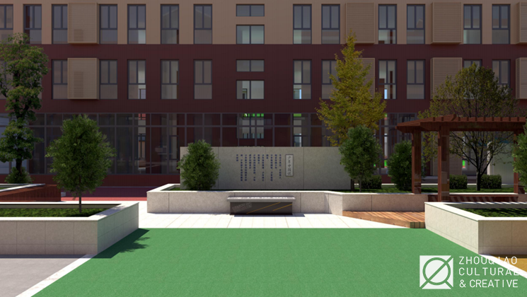 为了凸显学校原有的园林式校园的特色,我们对原本的园林景石组景进行了形象升格。加入了水的元素,与已有的山石、林木相映衬,形成墨池翠影的校园一景,尽显幽雅之美。
