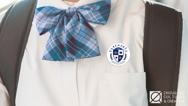 在盾牌造型外中英文校名与桂枝共同环绕,组成标志的最外围,桂枝象征美好与荣耀,更隐含着蟾宫折桂的美好期许,与校名结合在一起,凸显玄外师生对优秀品质与才能的追求。