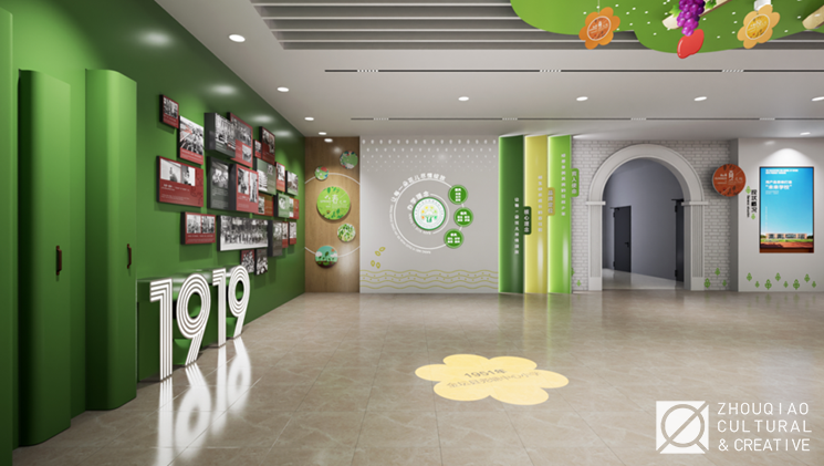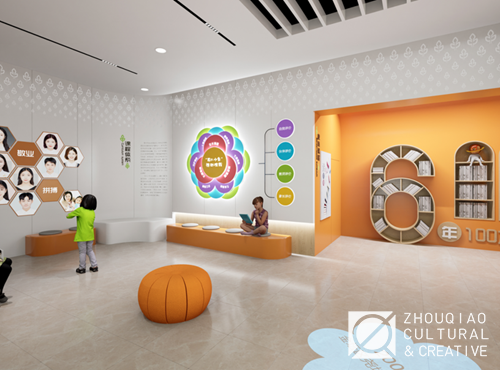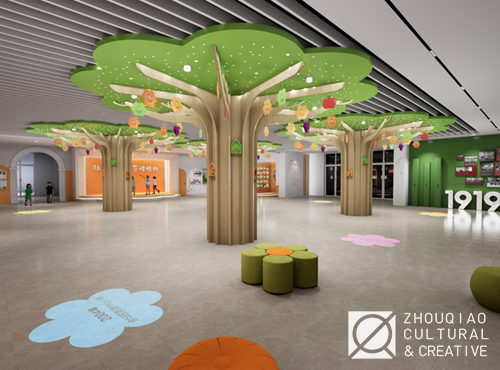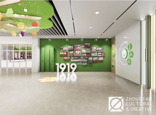 为了突出学校的“花木”特色,在大厅中融入了丰富的花木元素,并且将“花木育人”“花儿少年”等特色文化概念作为线索贯穿到展览的内容规划和艺术设计中。